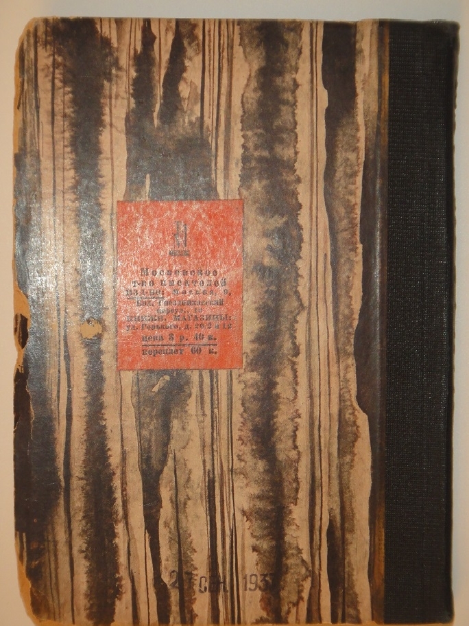 Экземпляр в составном оригинальном издательском переплёте работы художника Л.Литвака: ледериновый корешок с конгревным вертикальным тиснением, картонажные художественно-оформленные крышки.