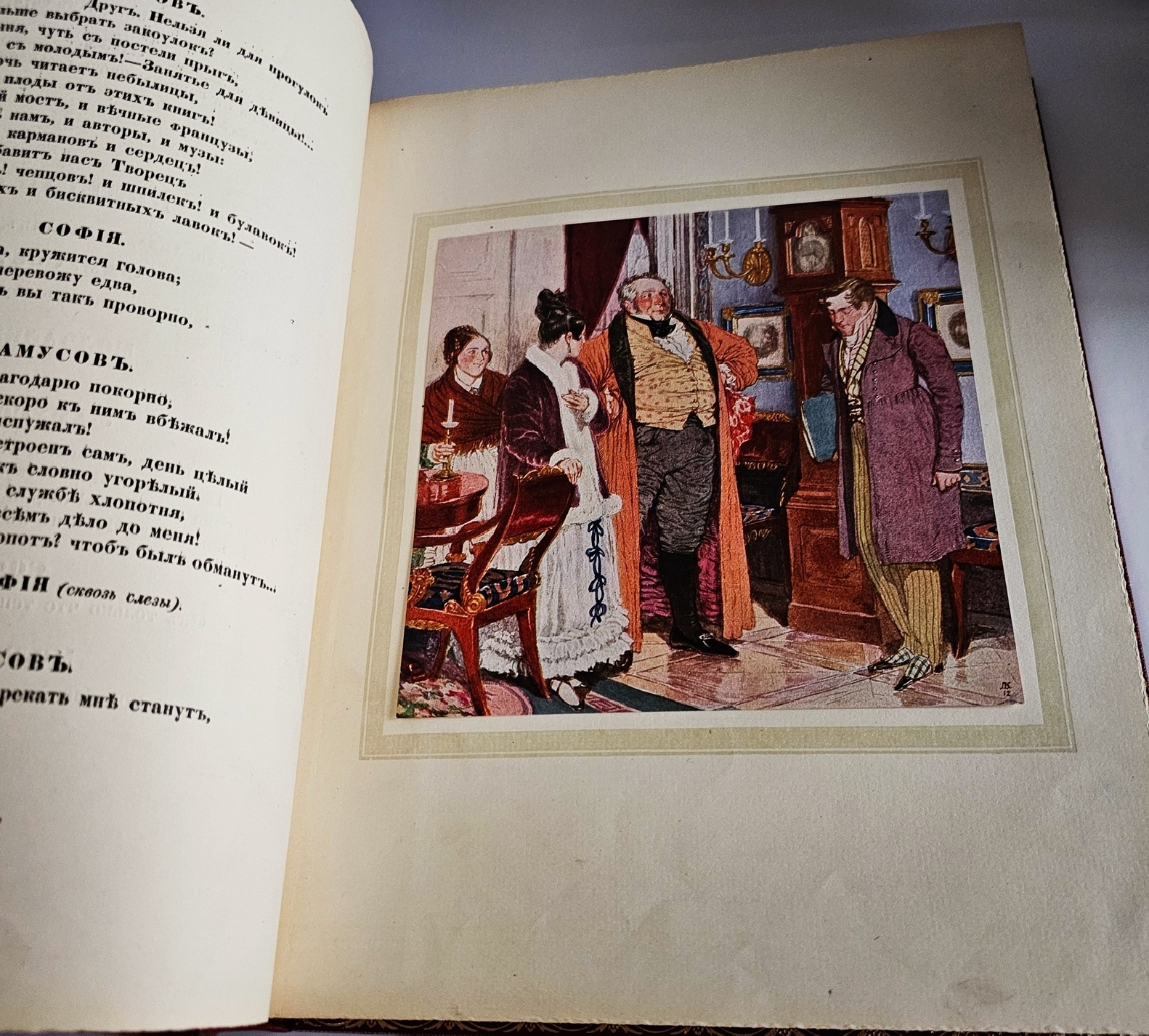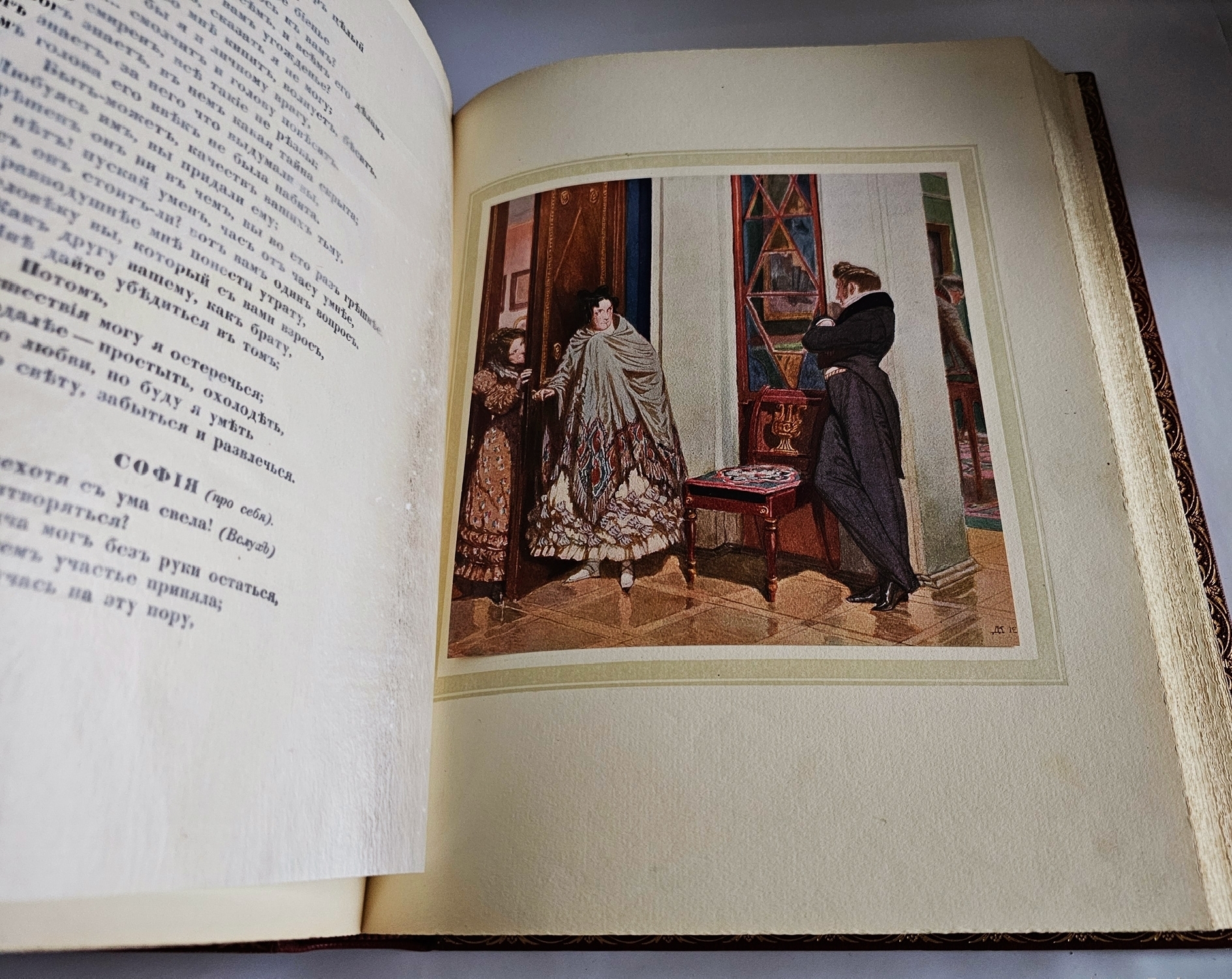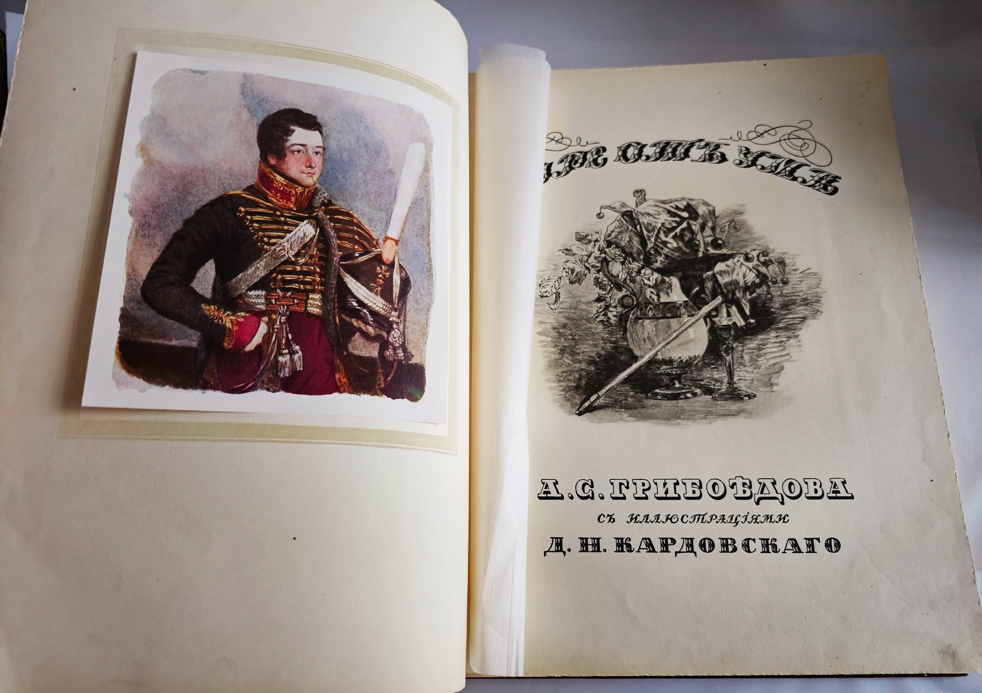 Роскошное подарочное издание бессмертной комедии А. С. Грибоедова «Горе от ума» (1823–1824), выпущенное в 1917 году одним из ведущих петербургских издательств — Товариществом Р. Голике и А. Вильборг. Книга представляет собой выдающийся образец книжного искусства Серебряного века: сочетание академически выверенного текста, фундаментального научного аппарата и изысканного художественного оформления делает это издание уникальным памятником русской культуры рубежа XIX–XX веков.