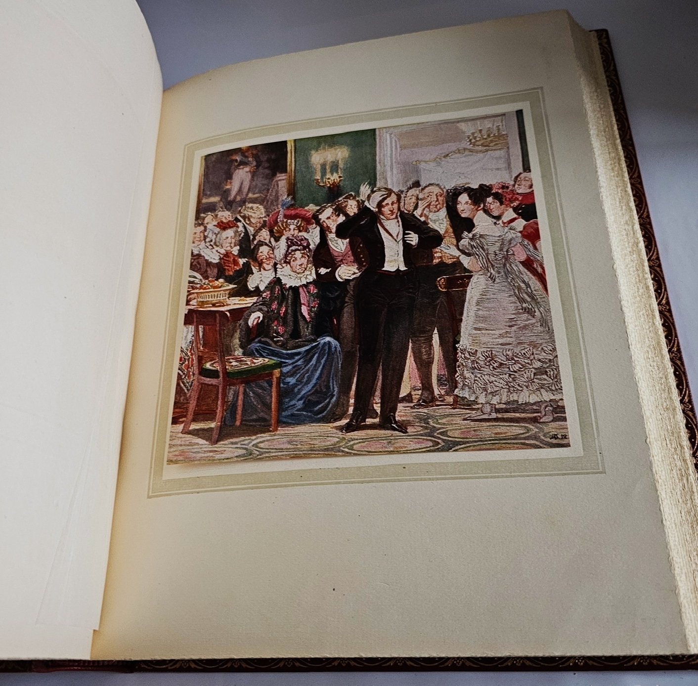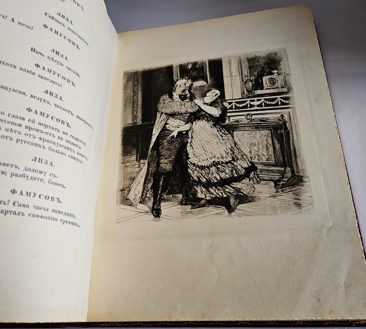 Особую ценность представляют иллюстрации Д. Н. Кардовского — одного из лучших книжных графиков своего времени. Его акварельно‑перовые рисунки выполнены в манере русского модерна и отличаются психологической глубиной и исторической достоверностью. Художник тщательно проработал костюмы, интерьеры и мимику персонажей, сумев передать сатирическую остроту текста через выразительные, но не карикатурные образы. Композиция иллюстраций тесно связана с драматургическим действием, что делает их не просто украшением, а полноценным комментарием к тексту. Печать выполнена с авторских досок, благодаря чему сохранены богатство тональных переходов и тонкость линий.