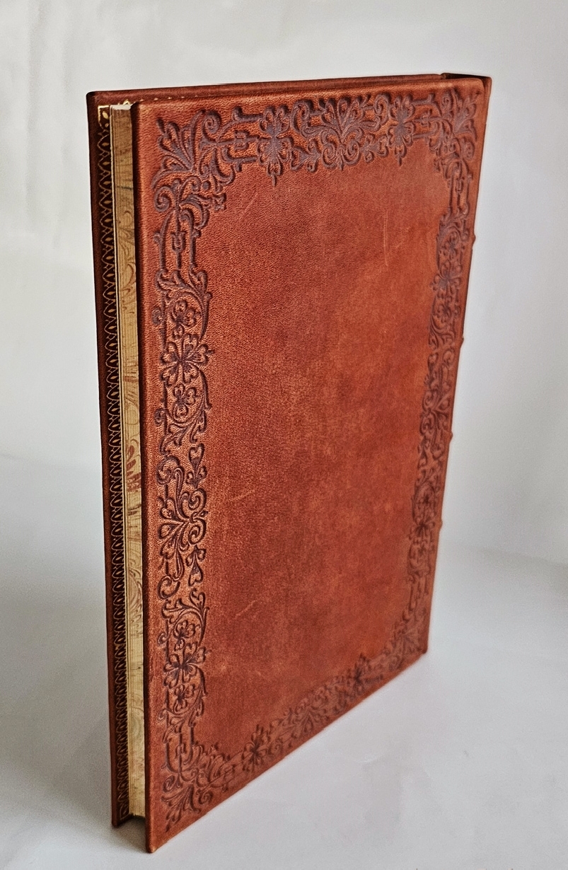 Экземпляр в великолепном современном цельнокожаном переплёте с блинтовым и золотым тиснением. Золототисненая дублюра. Красочные форзацы. Под переплетом сохранена мягкая издательская обложка. Формат: 23,5x16,5 см., 282 стр.