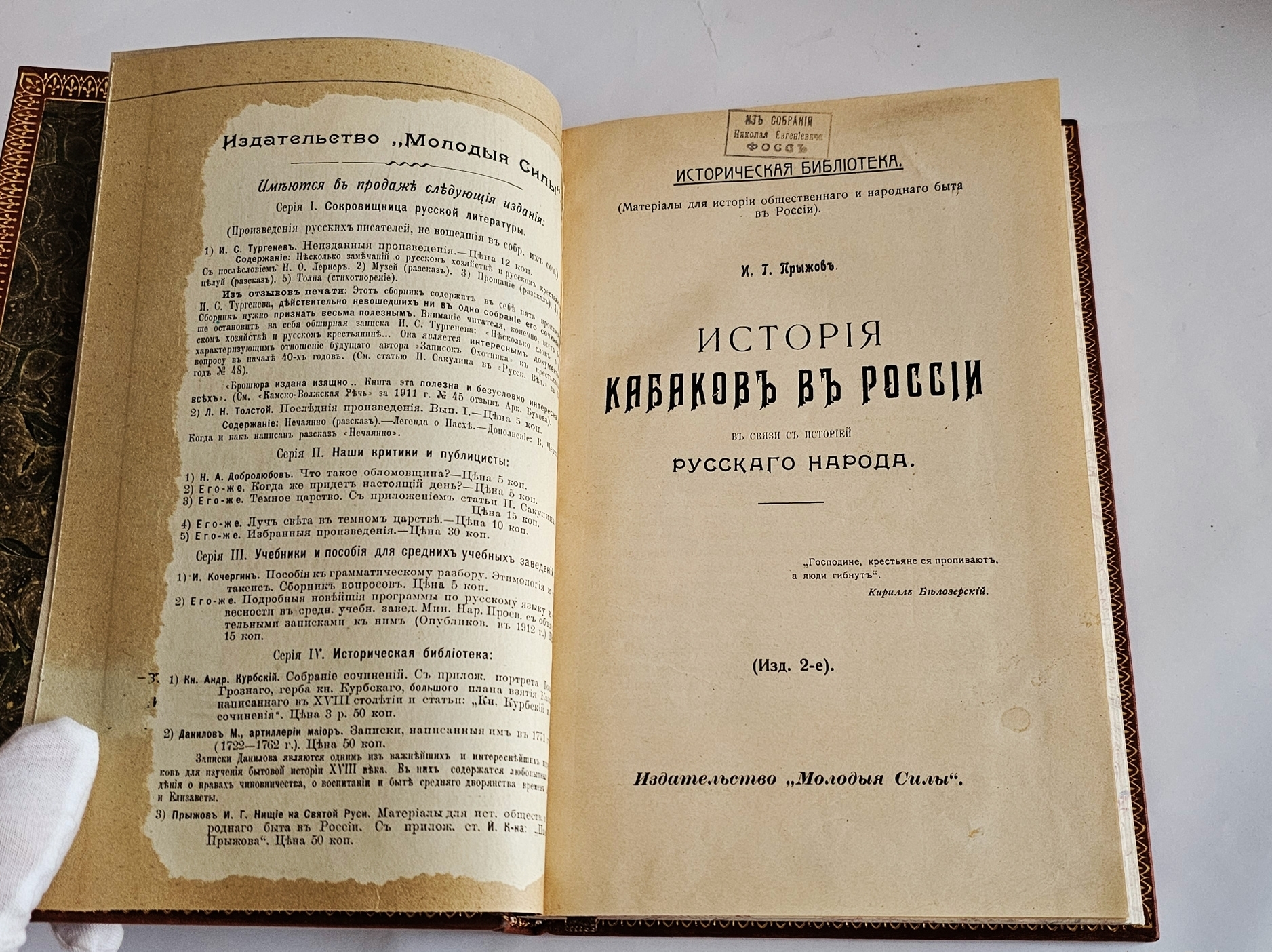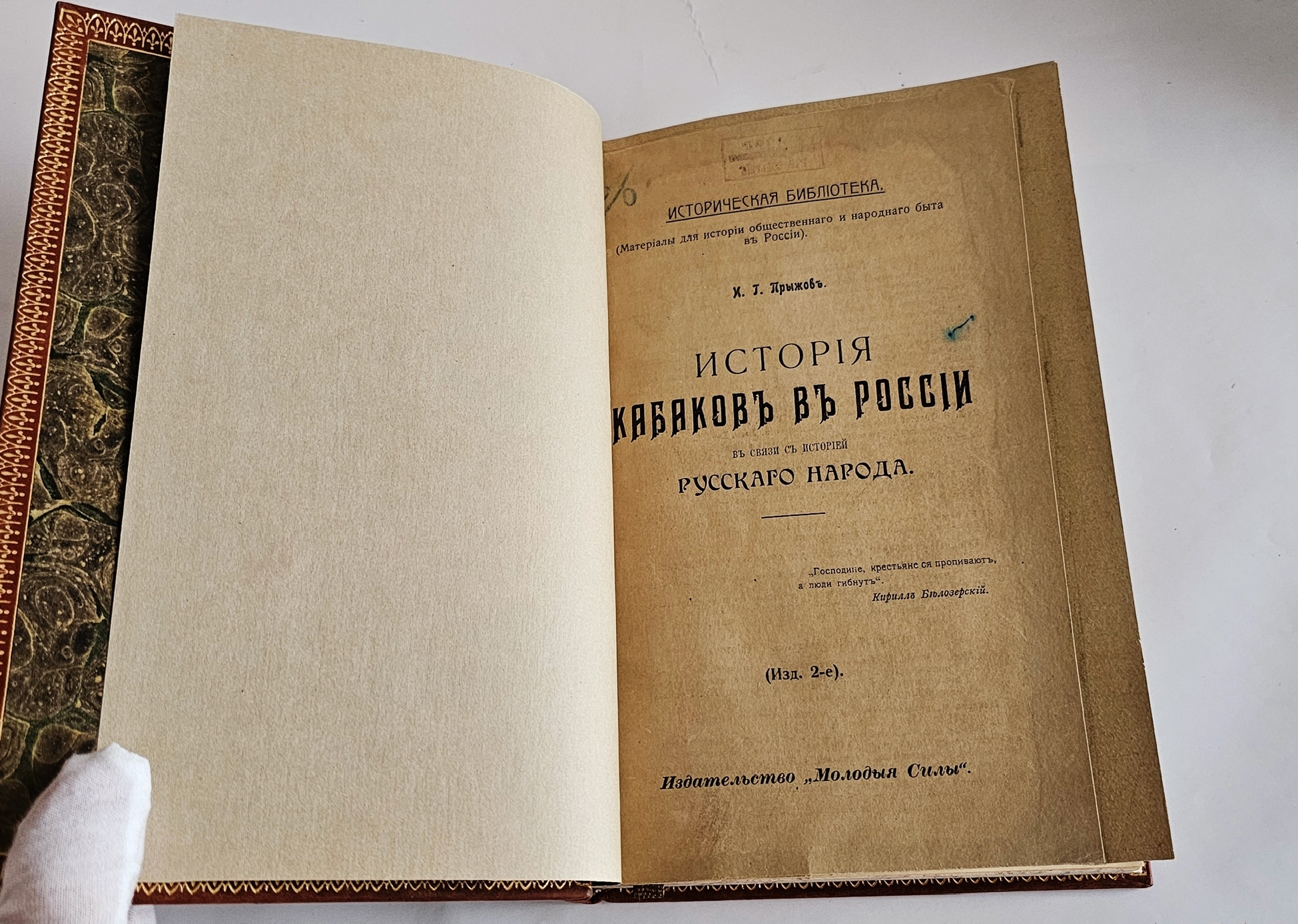 Эпиграфом взяты слова великого подвижника Святой Руси Кирилла Белозерского : " Господине, крестьяне ся пропивают, а люди гибнут ". Книга является единственным значительным исследованием кабаков и в целом русского питейного промысла.