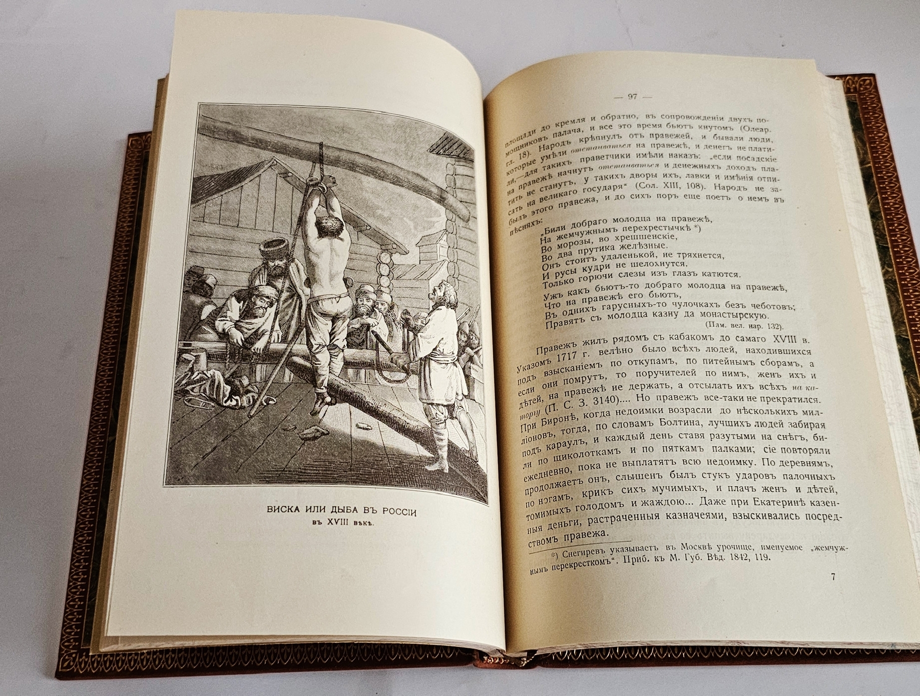 Издание напечатано на качественной веленевой бумаге и украшено четырьмя полностраничными иллюстрациями на отдельных вклейках: Наказание батогами в России в XVIII веке; Виска или дыба в России в XVIII веке; Сцены в кабаке и перед кабаком; Правеж ( В древнерусском судопроизводстве: взыскание долга истязаниями, битьём ).