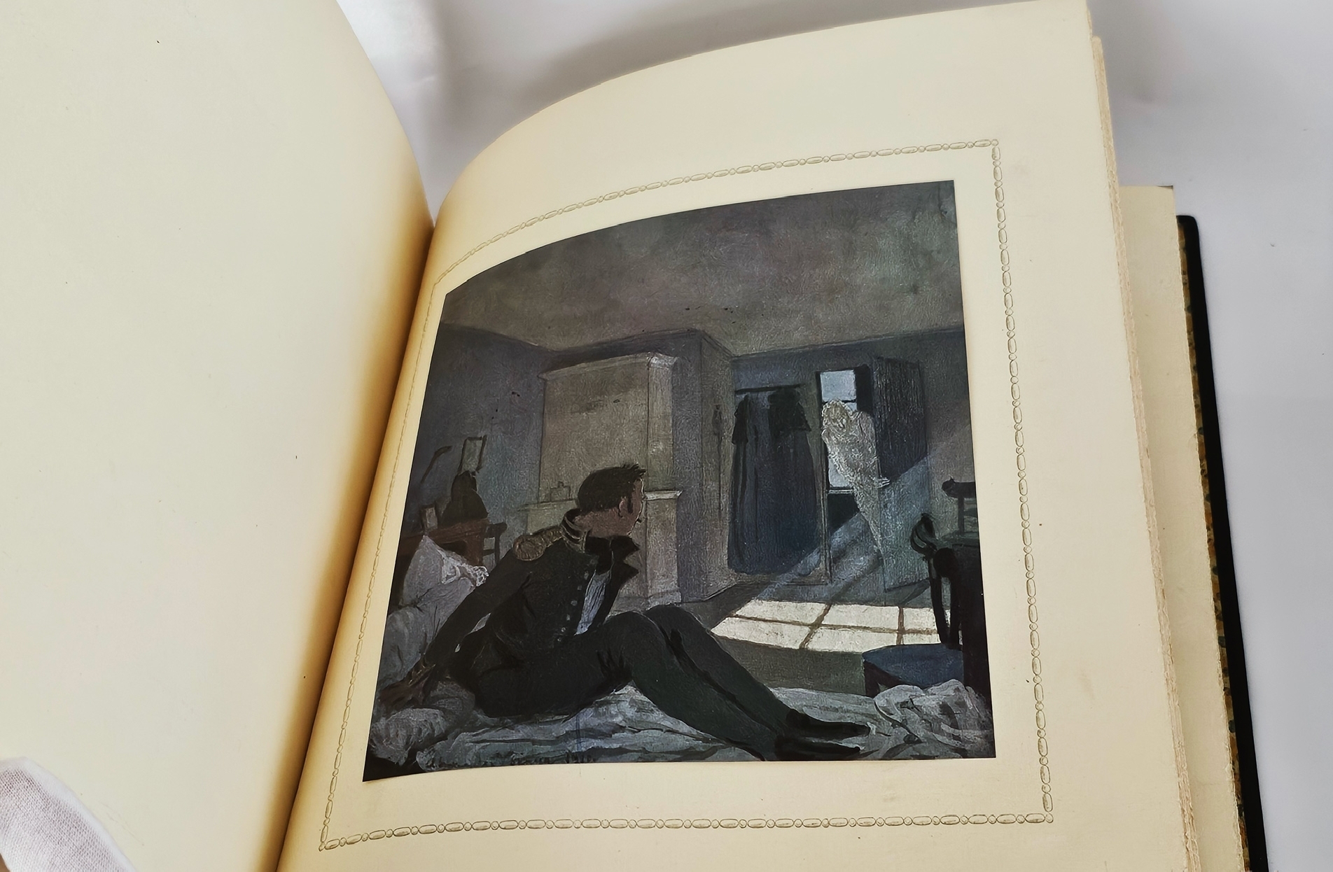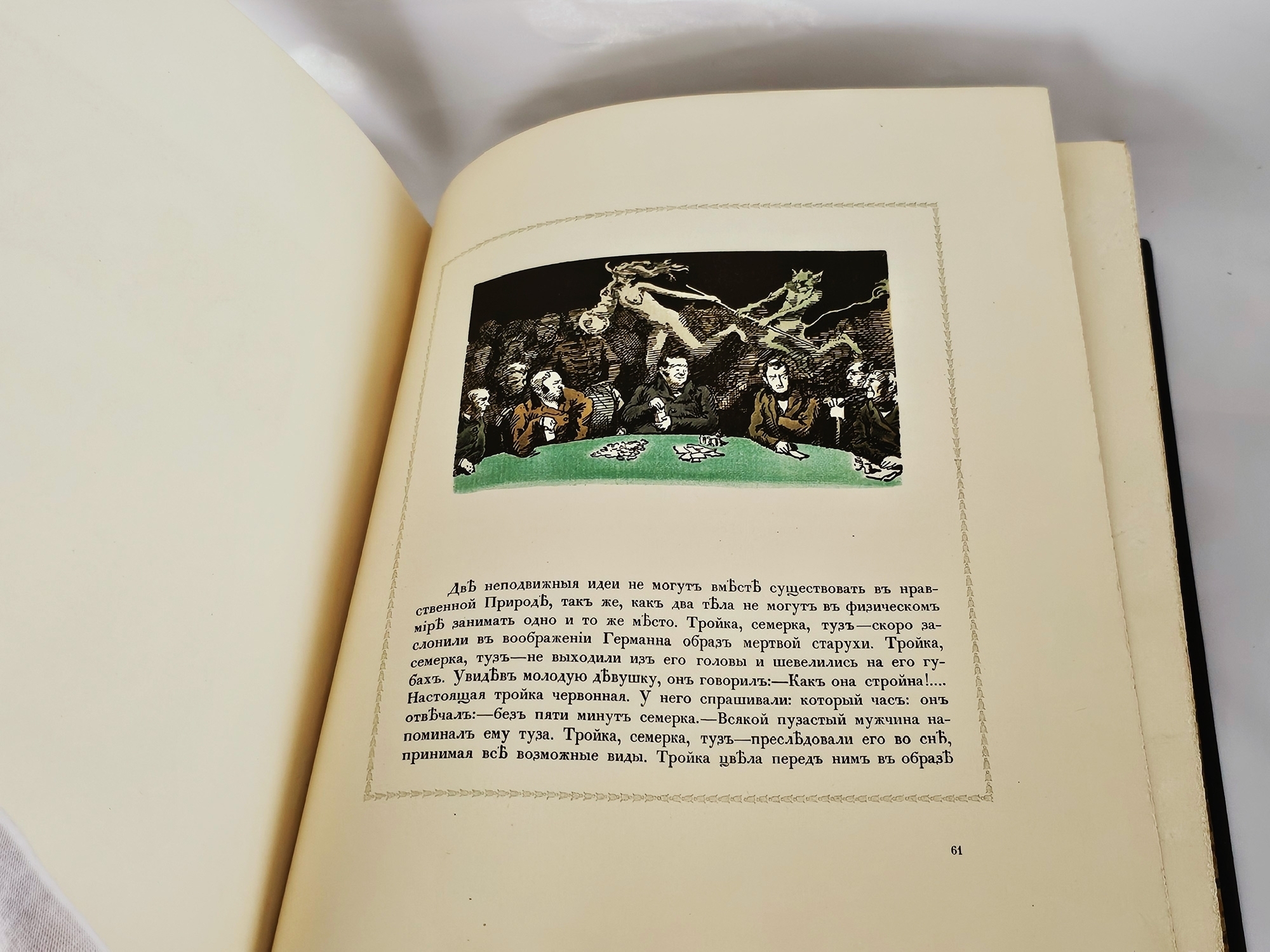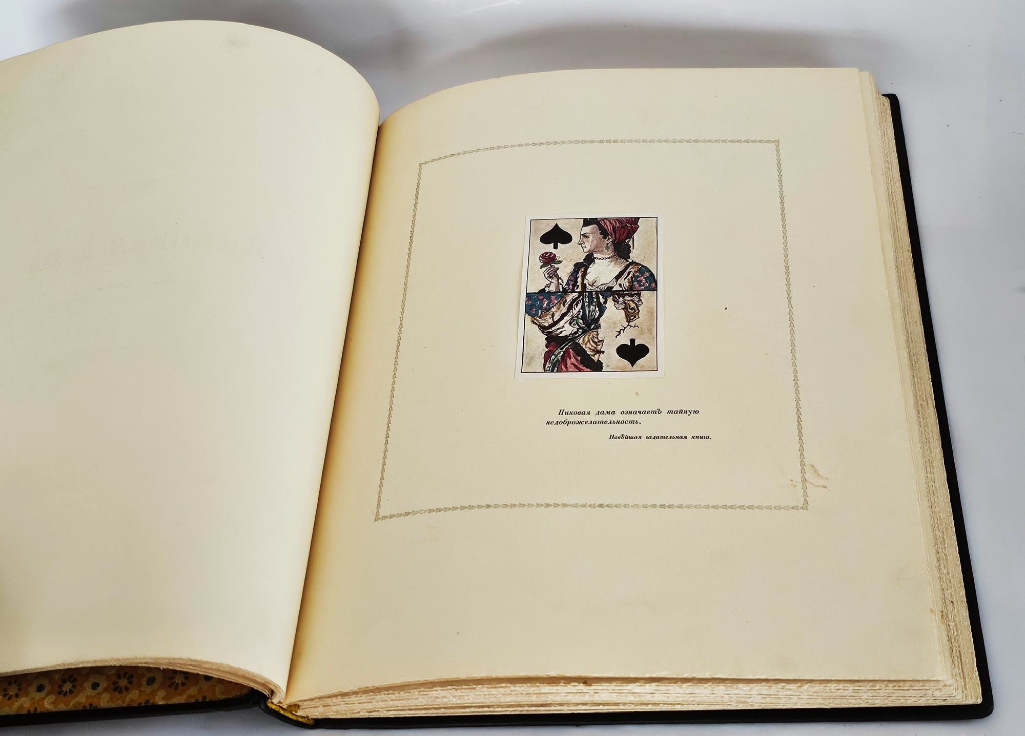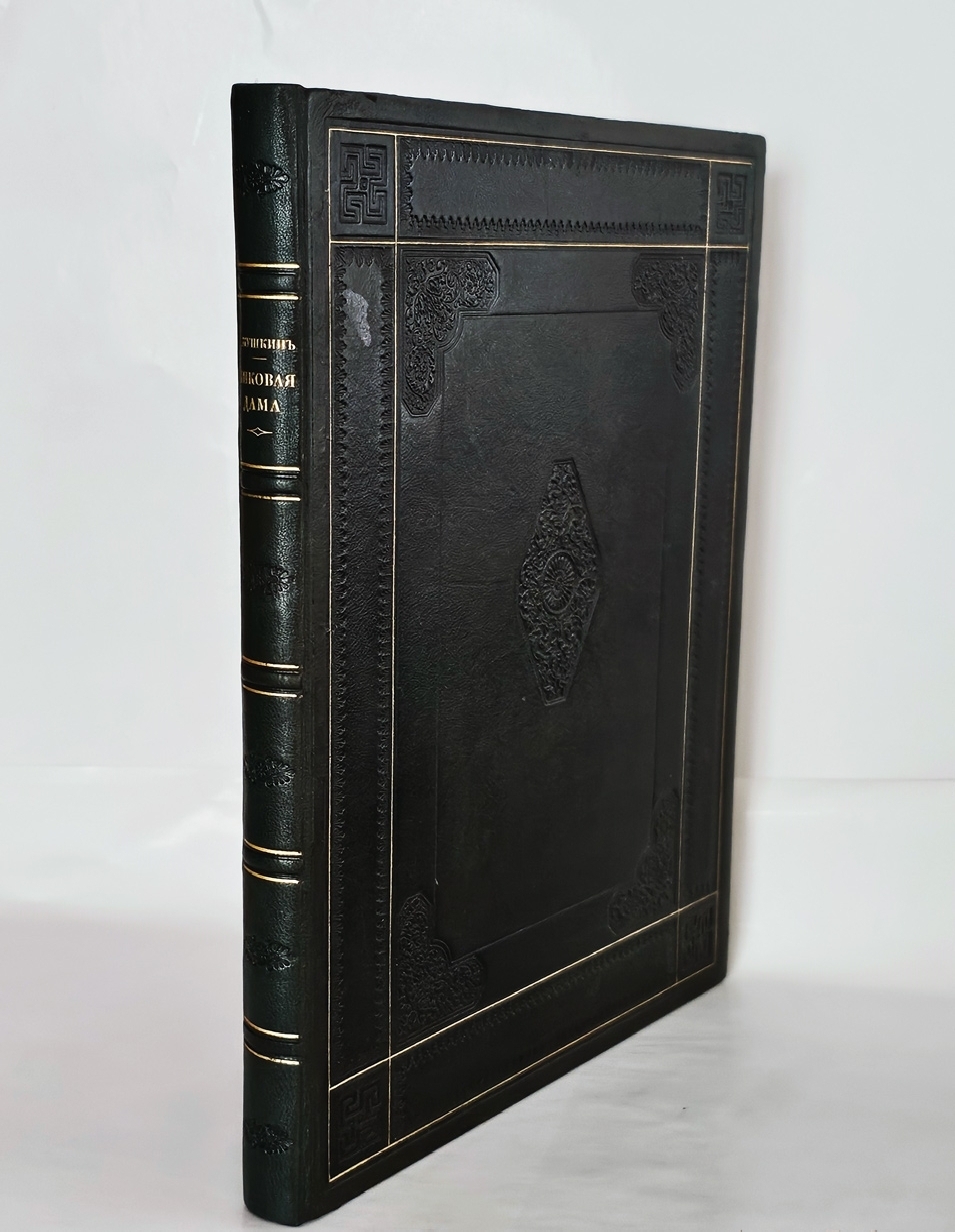 Лучшее дореволюционное издание повести Александра Сергеевича Пушкина «Пиковая дама», выпушенное знаменитой типографией поставщиков Его Императорского Величества Р.Голике и А.Вильборг, отпечатанное на высококачественной вержированной бумаге ручной выделки. Издание оформлено выдающимся художником-акварелистом, талантливым искусствоведом Александром Николаевичем Бенуа (1870-1960).