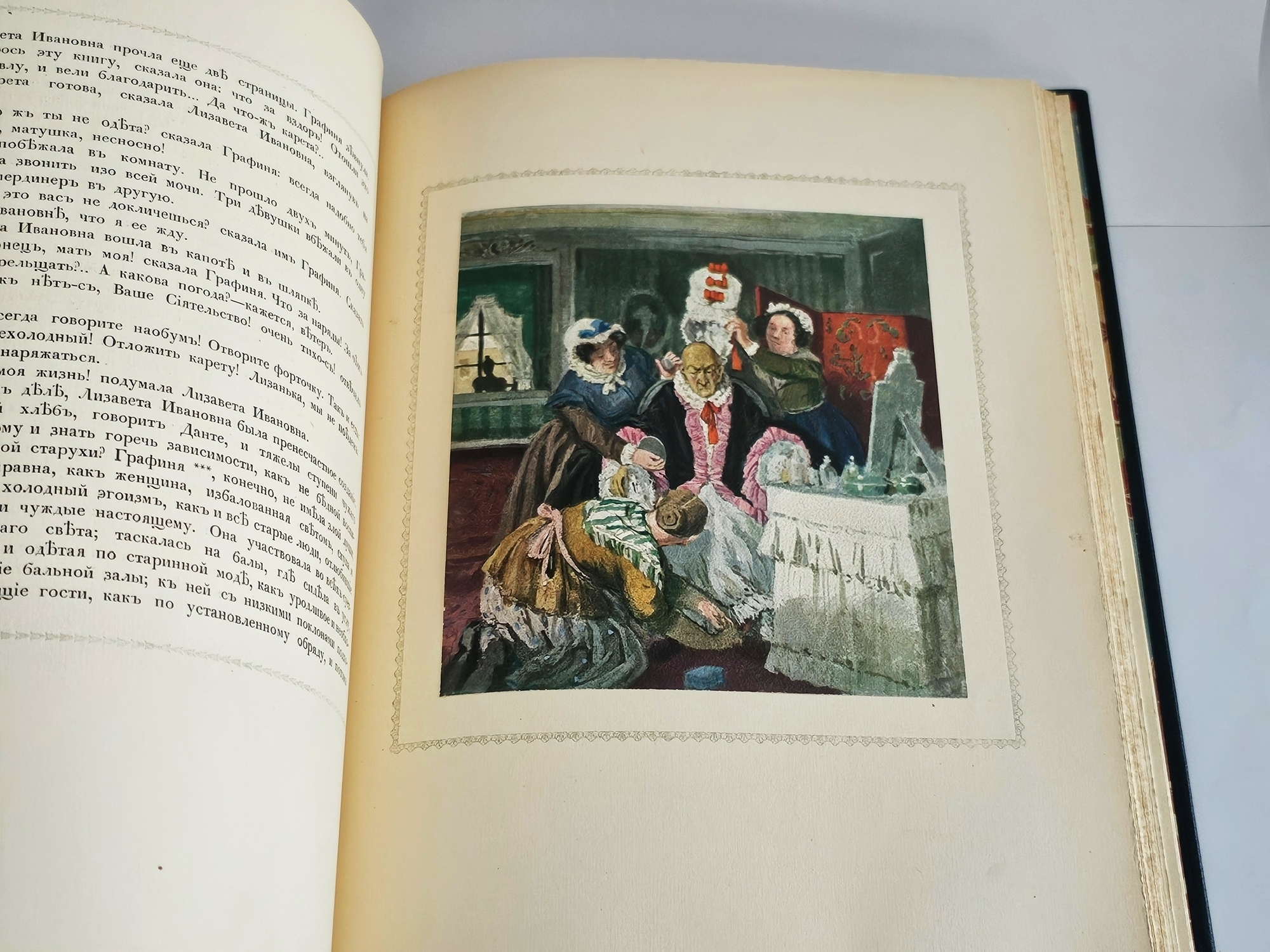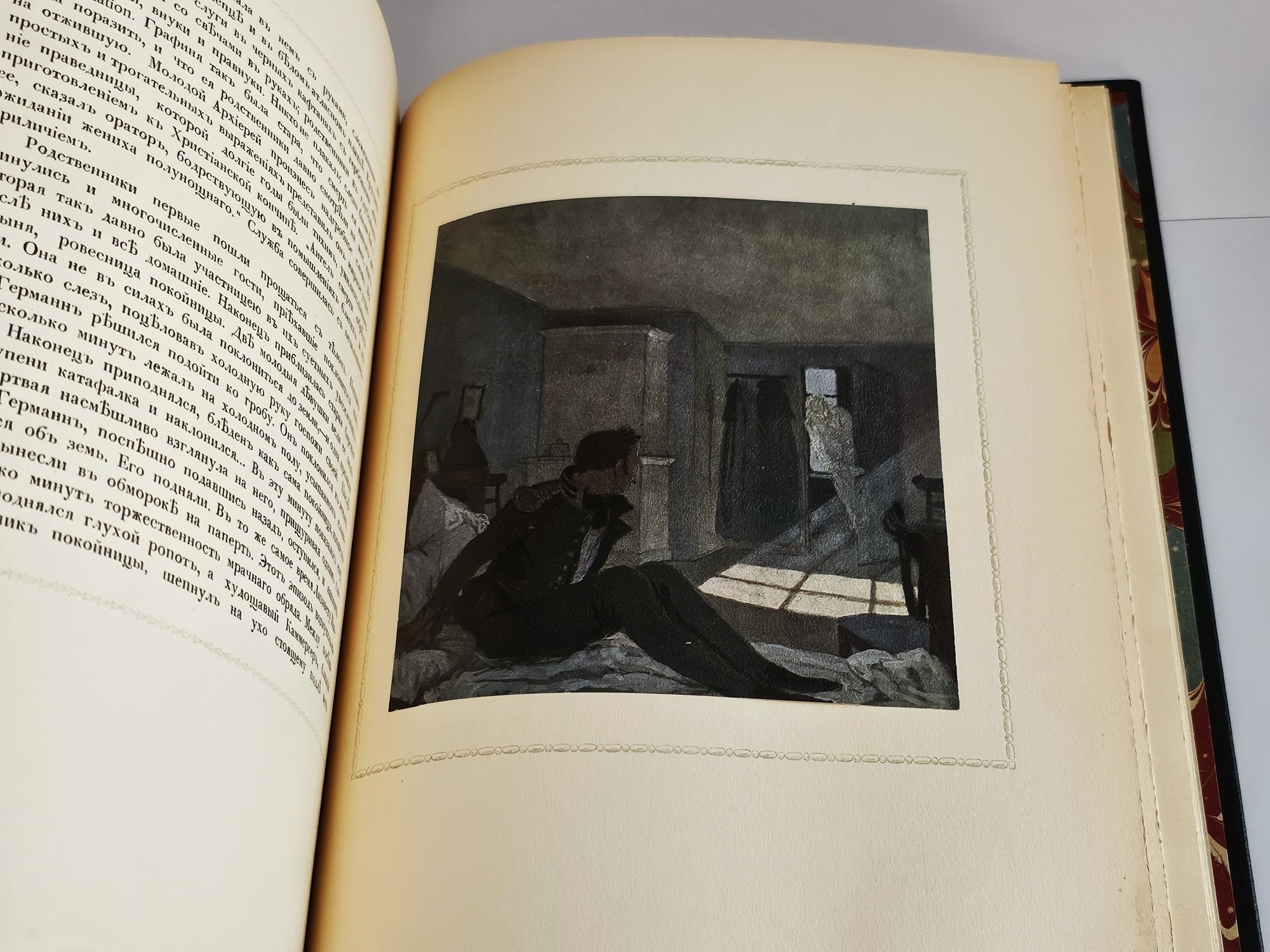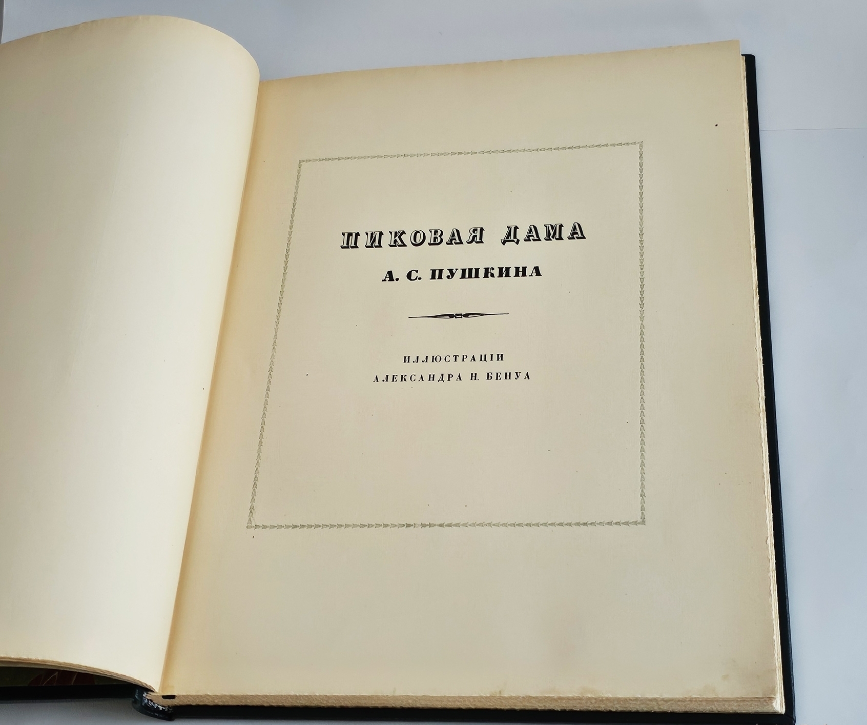 Лучшее дореволюционное издание повести Александра Сергеевича Пушкина «Пиковая дама», выпущенное знаменитой типографией поставщиков Его Императорского Величества Р.Голике и А.Вильборг, отпечатанное на высококачественной вержированной бумаге ручной выделки. С иллюстрациями Александра Н.Бенуа.