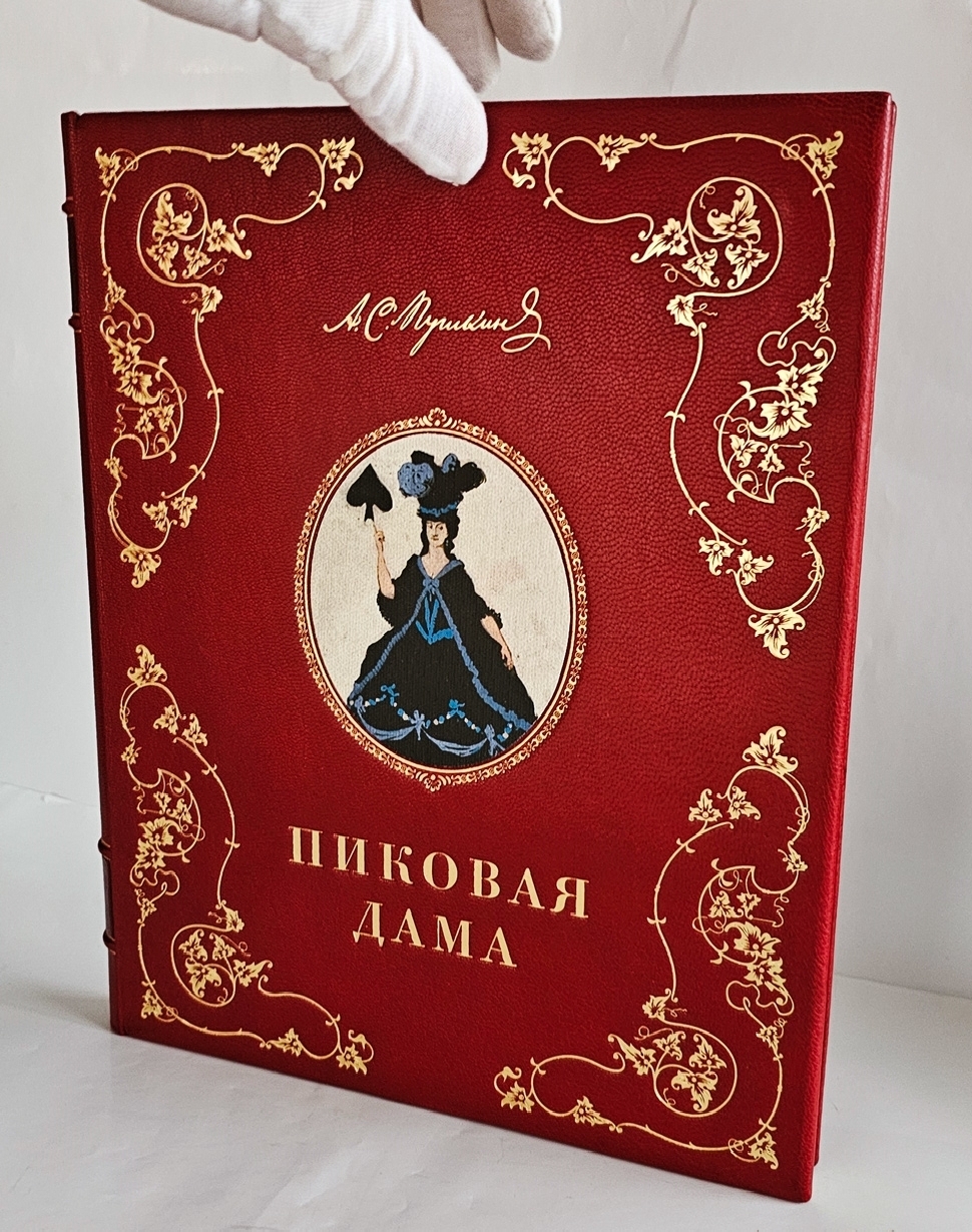 Книга в красивом оригинальном цельнокожаном современном переплете с изображением пиковой дамы на верхней крышке переплета. Форзацы павлинье перо. Золототисненая дублюра. Большой формат: 30x24 см. Плотная качественная бумага. С иллюстрациями. Состояние отличное.