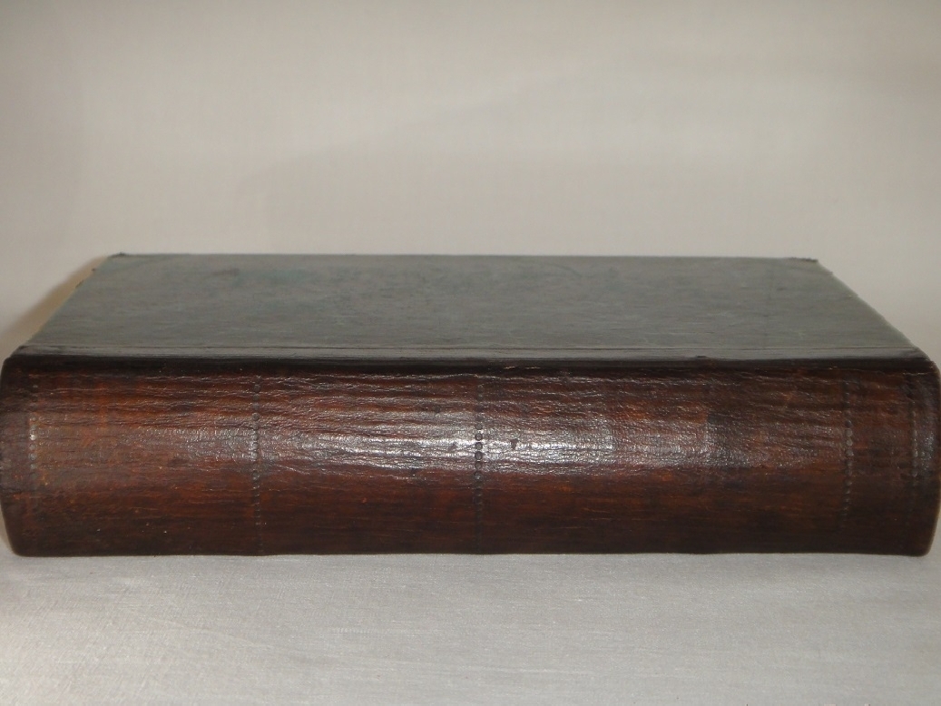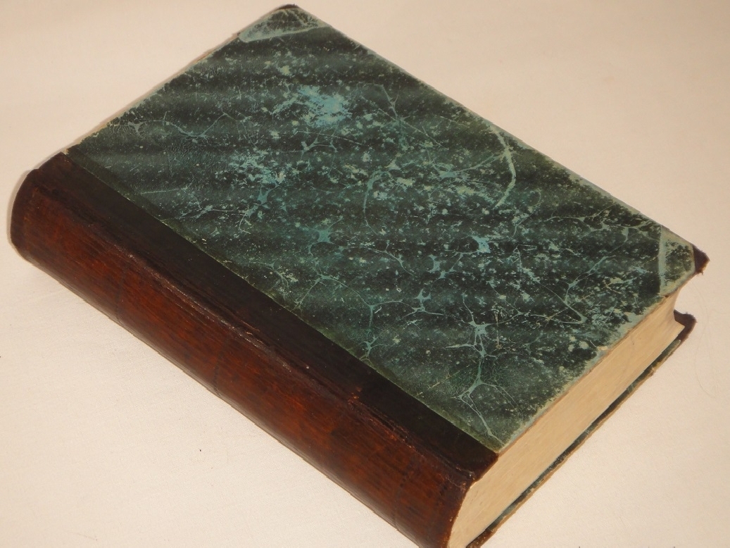 Экземпляр в добротном полукожаном переплёте эпохи с блинтовым тиснением на корешке. Крышки с уголками оклеены бумагой под мрамор. Форзацы светлого тона. Шёлковое ляссе.
