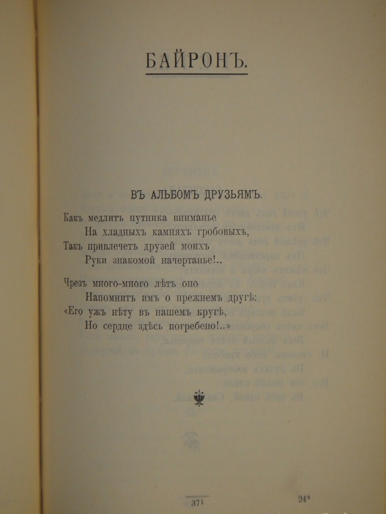 На фронтисписе на веленевой бумаге помещён страничный погрудный портрет автора, выполненный в Артистическом заведении Товарищества А.Ф.Маркс в СПБ. Далее, на жёлтой вержированной бумаге, двухстороннее факсимильное воспроизведение двух стихотворений: на одной стороне " Святая ночь " ( " Святая ночь на небосклон взошла " ), на оборотной " Пророчество " ( " Не гул молвы прошёл в народе " ).