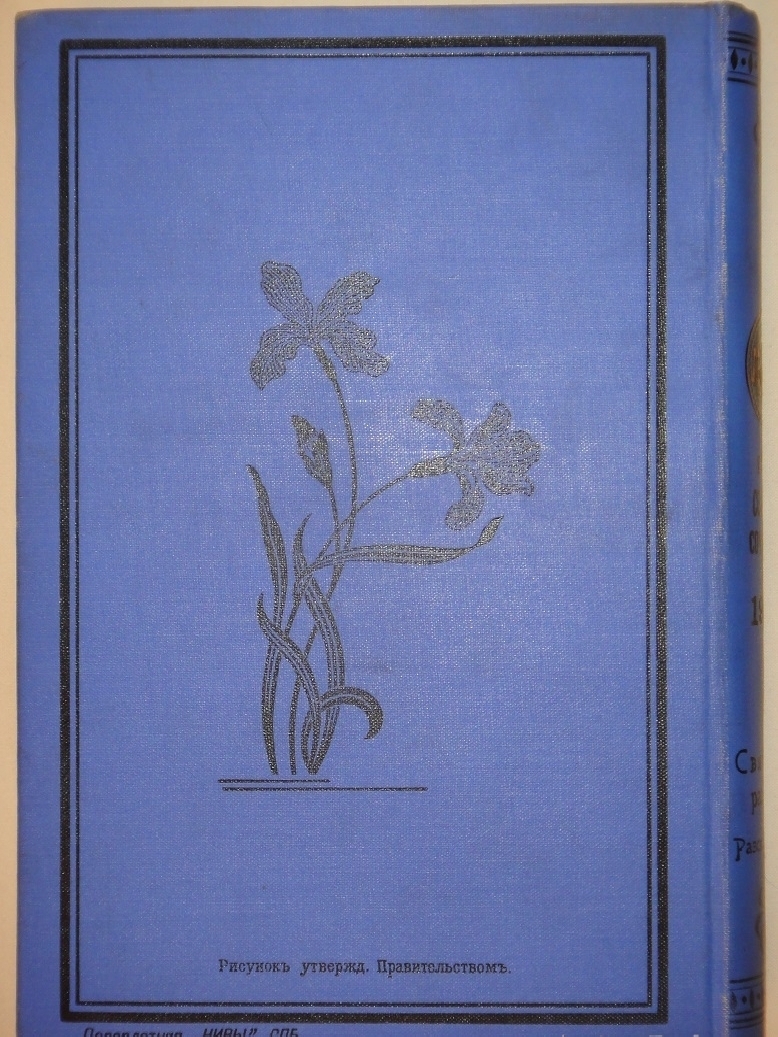 Экземпляр в двенадцати великолепных издательских коленкоровых перелётах с золотым и цветным художественным тиснением на корешках и крышках, выполненных в стиле модерн. Изящные составные форзацы с мотивами цветочного орнамента. Краплёный обрез.