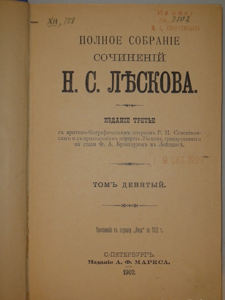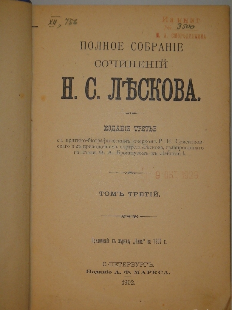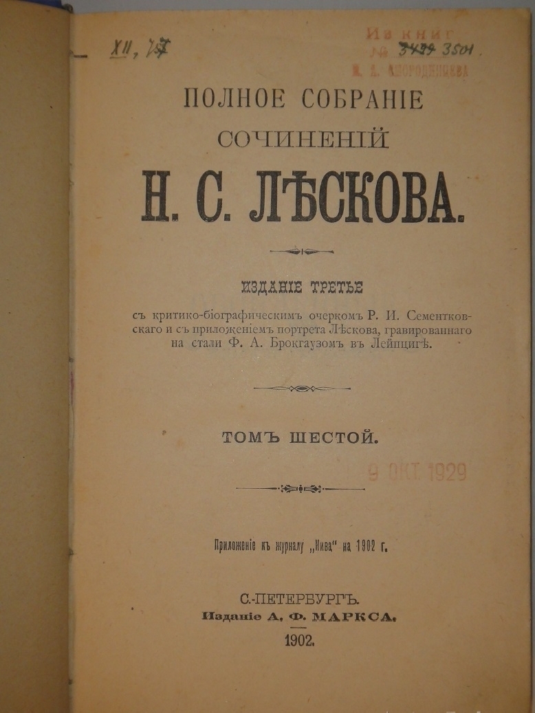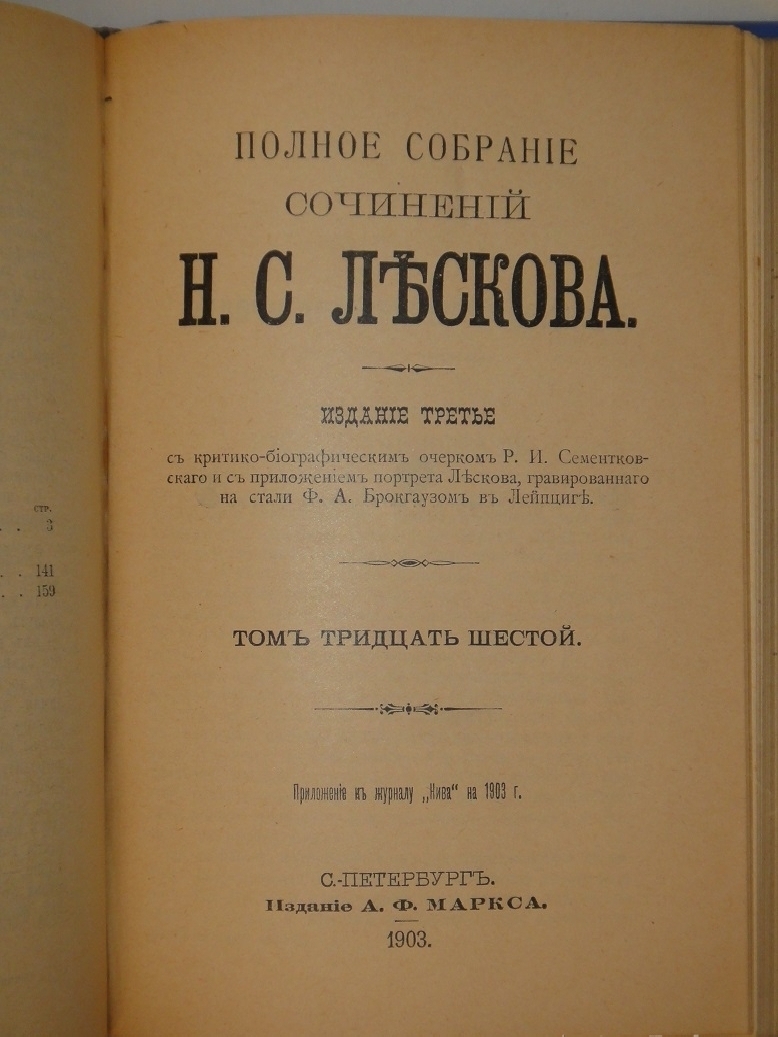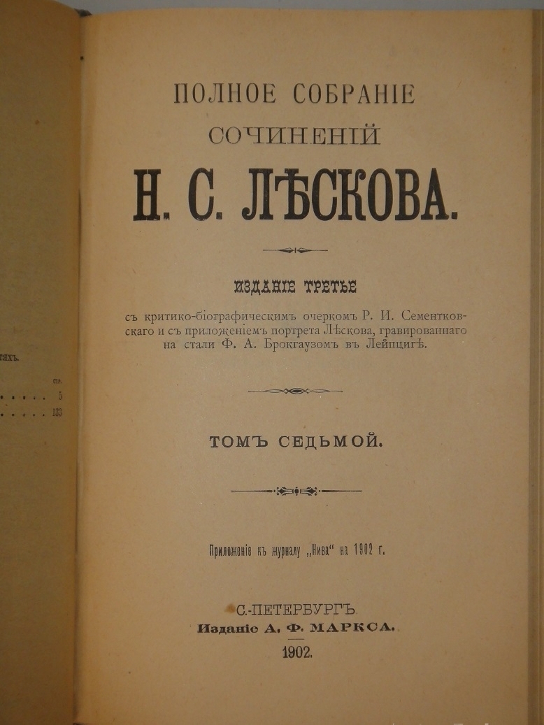 Из всех дореволюционных собраний сочинений Н.С.Лескова - настоящее издание является самым полным и лучшим.