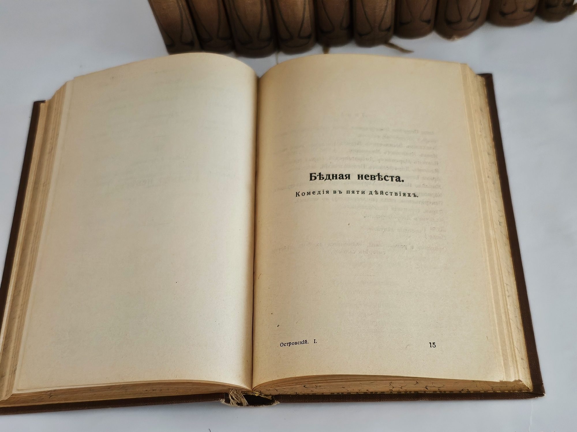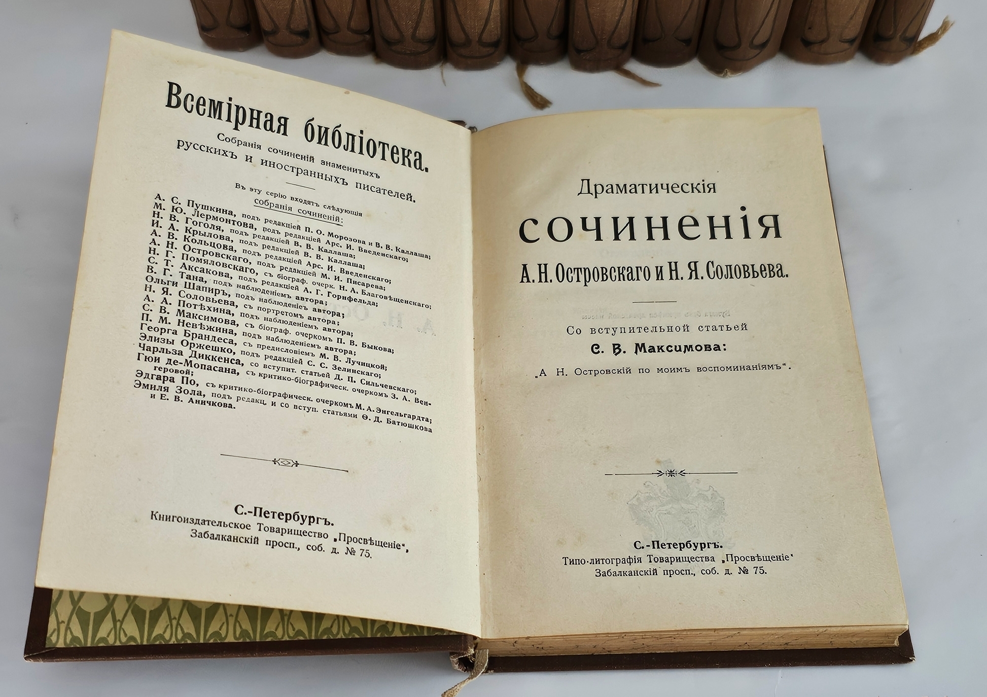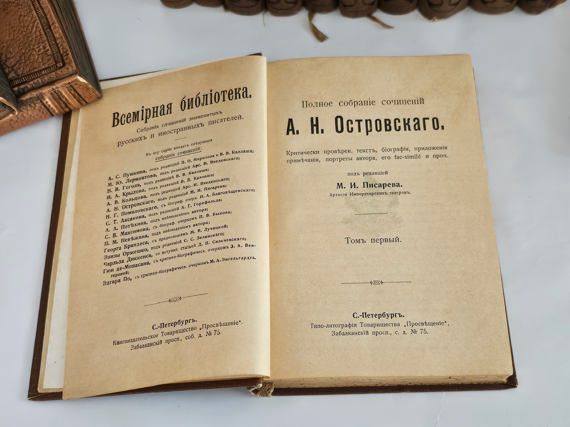 «Полное собрание сочинений в двенадцати томах» А. Н. Островского вышло в Санкт‑Петербурге в типо‑литографии Товарищества «Просвещение» в 1904–1909 годах. Издание подготовлено под редакцией М. И. Писарева, артиста Императорских театров.