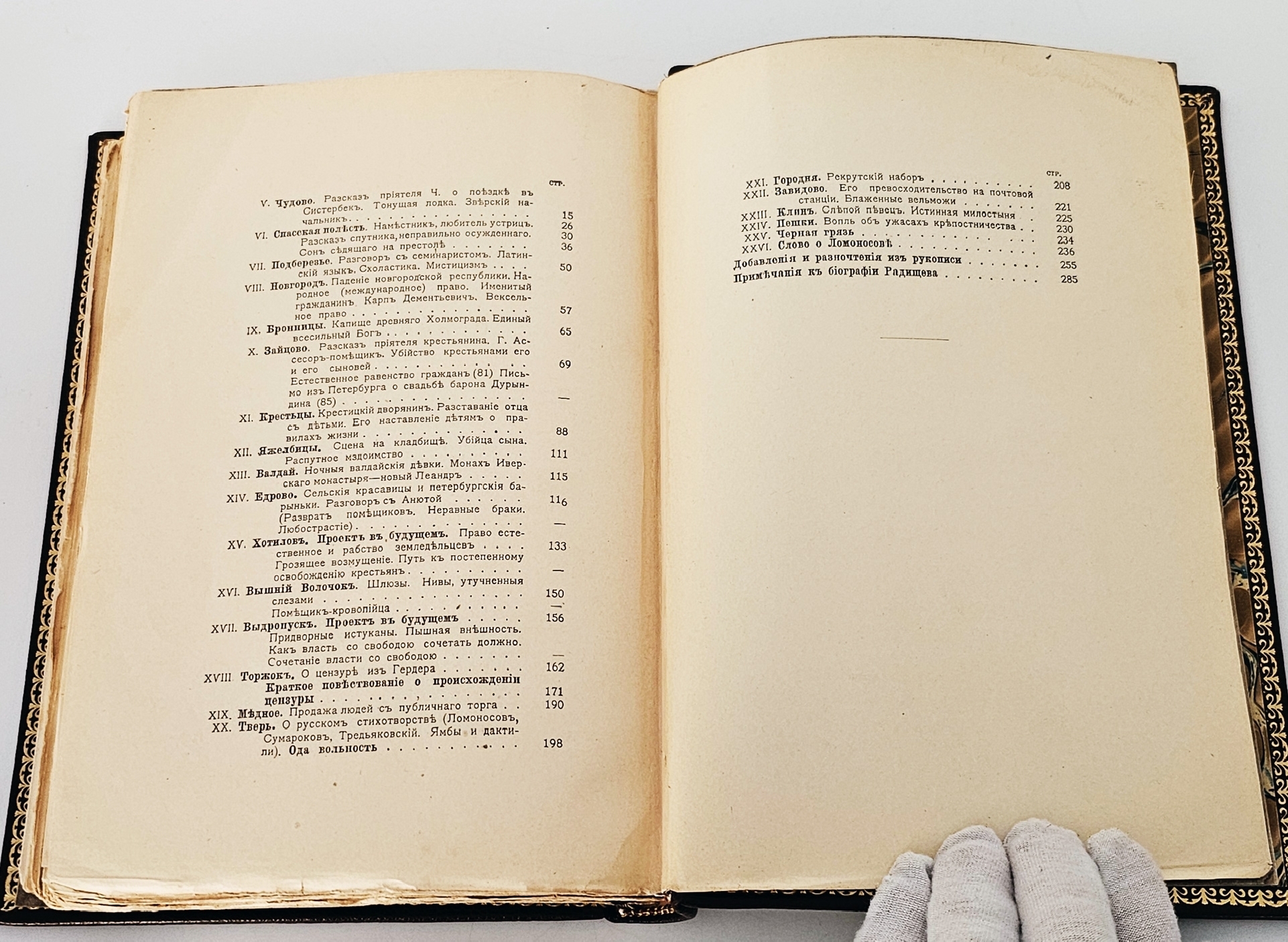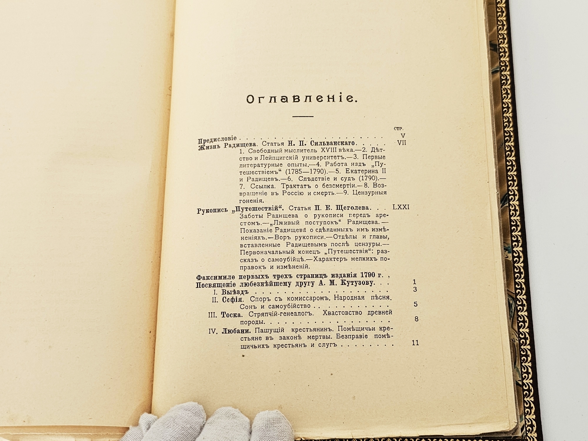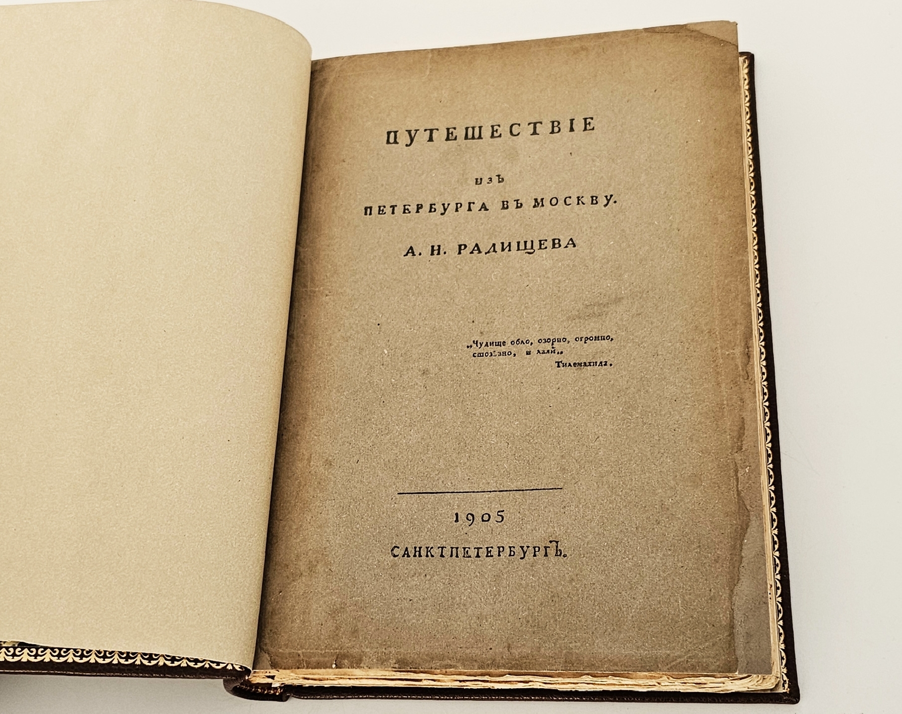 В истории русской литературы есть много имен, внесших свою лепту в ее развитие, но имя А.Н. Радищева занимает в этом ряду особое место. Мыслитель, писатель, серьезный философ, разделивший трагическую судьбу своей главной книги. Правдивое, исполненное сочувствия изображение жизни народа, резкое обличие самодержавия и крепостничества вызвало высочайший гнев. Книга была запрещена, почти весь тираж конфискован и уничтожен и до 1905 года книга распространялась в списках. Сам Радищев был сослан в Сибирь. Экземпляры первого издания на сегодняшний день являются самой великой библиографической редкостью.