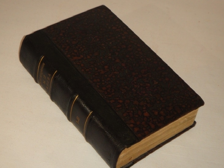 Два тома в одном чудесном полукожаном марокеновом переплёте эпохи с уголками и золотым тиснением на бинтовом корешке. Крышки оклеены бумагой под мрамор. Форзацы светлого тона. Шёлковый каптал и ляссе.