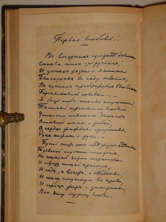 На фронтисписе первого тома помещён литографированный портрет автора, проложенный защитной калькой. Факсимиле стихотворения " Первая любовь " ( " В вечернем сумраке долина Синела тихо за ручьём " ) на отдельной вклейке.