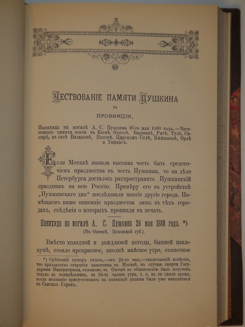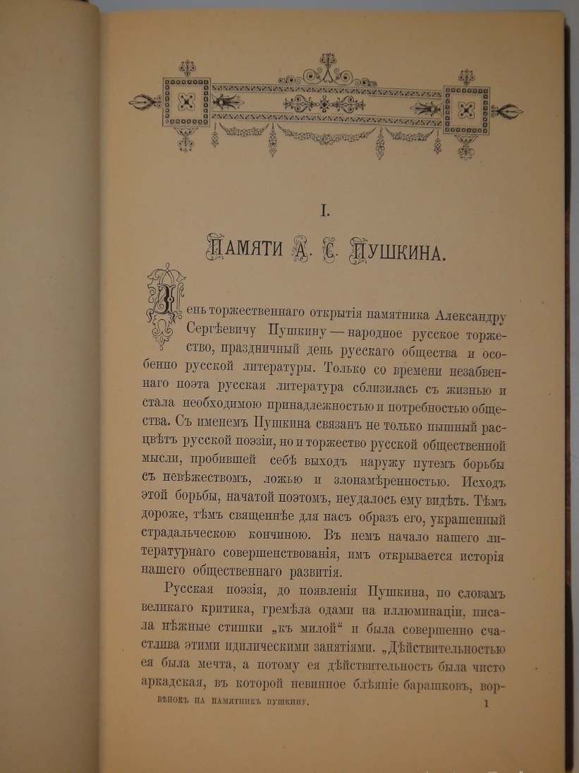 Полное название: Венок на памятник Пушкину. Пушкинские дни в Москве, Петербурге и провинции. Адреса, телеграммы, приветствия, речи, чтения и стихи по поводу открытия памятника Пушкину. Отзывы печати о значении Пушкинского торжества. Пушкинская выставка в Москве. Новые данные о Пушкине.