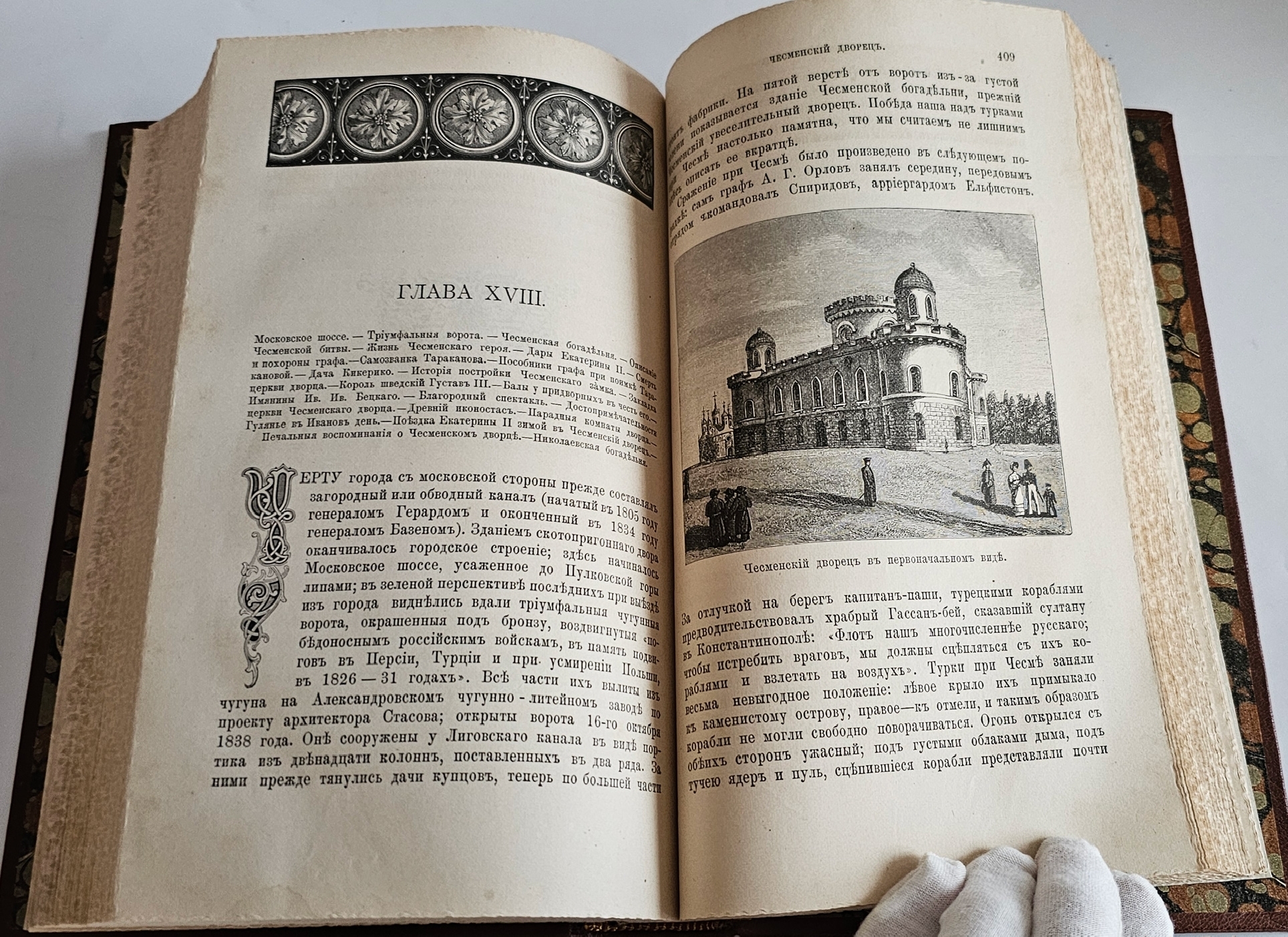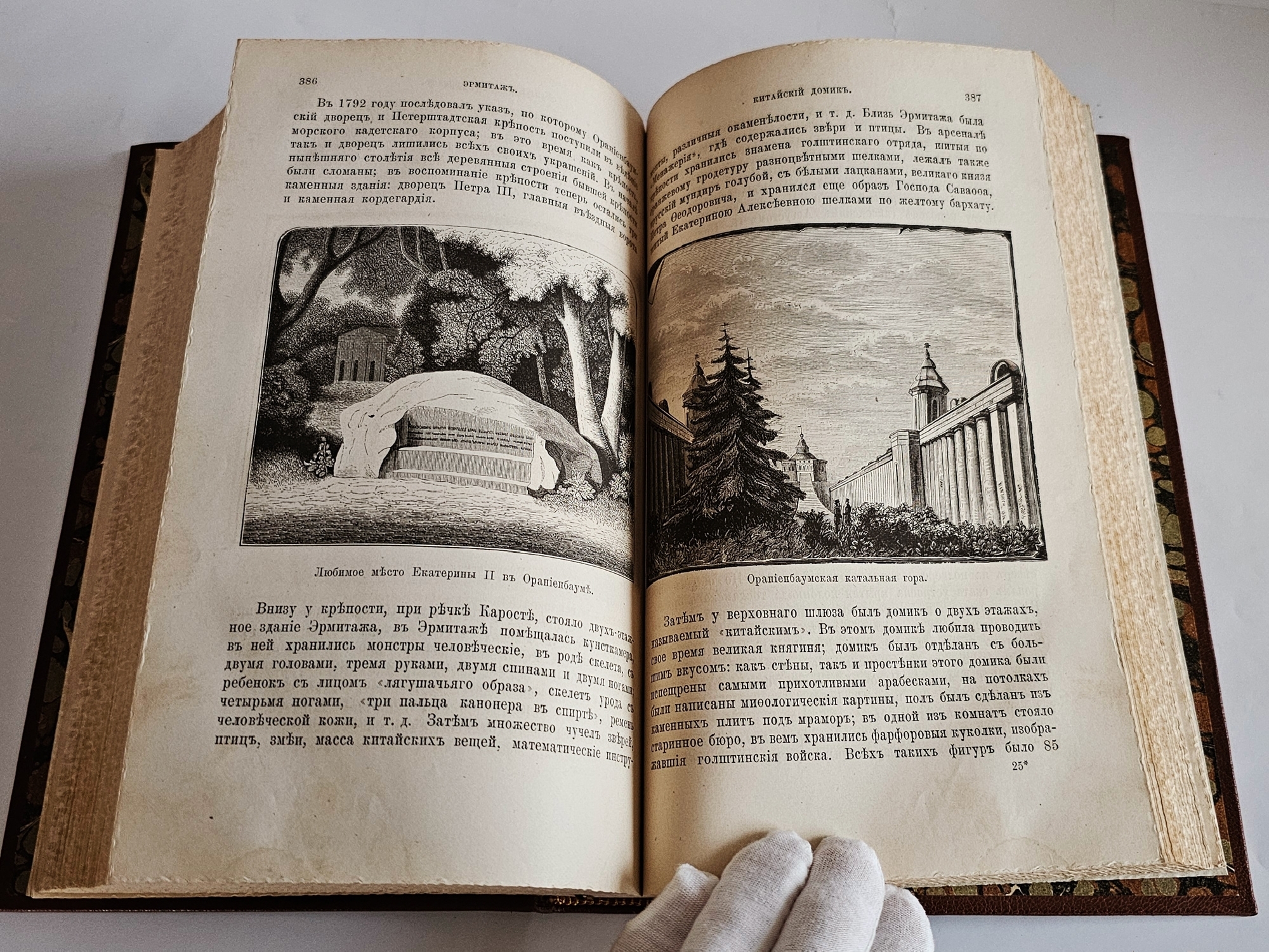 Книга в красивом современном цельнокожаном переплете с роскошным золотым тиснением. Обрез торшонированный. Корешок и крышки переплета украшены золотым орнаментом. Форзацы под мрамор. 550 стр. C гравированными иллюстрациями, в том числе полностраничными, включенными в пагинацию книги. Формат: 24x16,5 см.