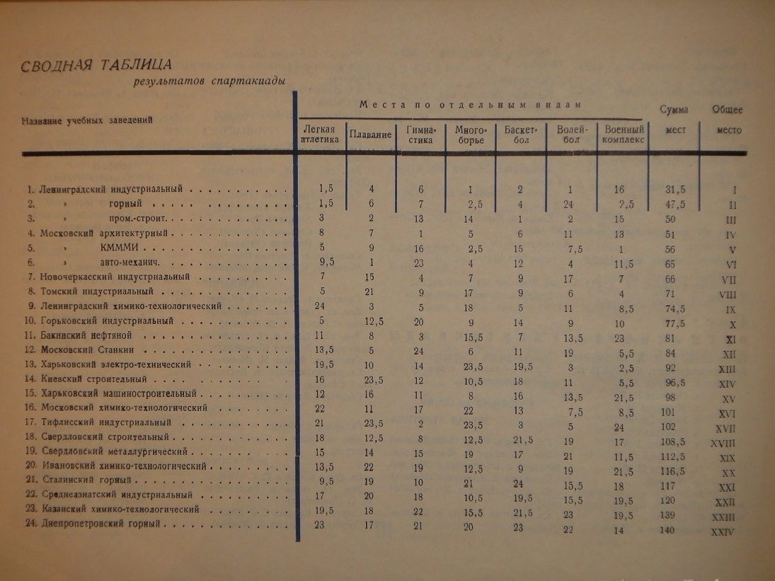 Первая Всесоюзная Спартакиада ВТУЗов тяжелой промышленности
