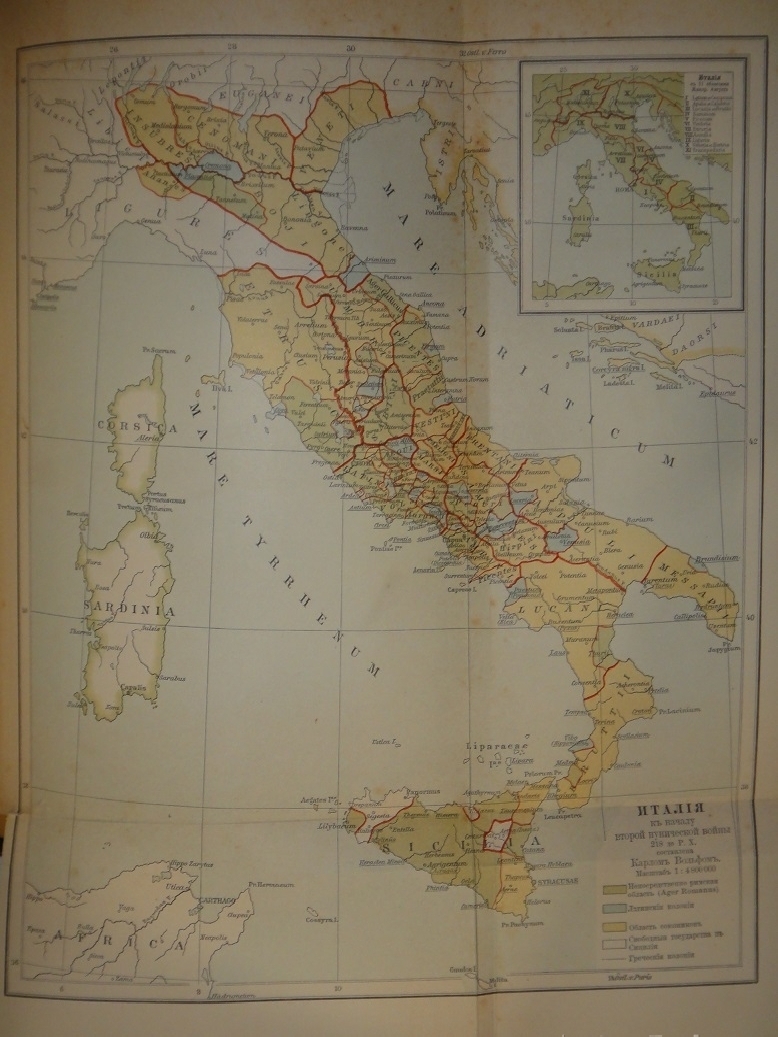 Том первый: VIII, [4], 612, XVI cтр. С 171 рисунком и одной цветной складной картой: Италия к началу второй пунической войны 218 до Р.Х. ( составлена Карлом Вольфом ). Том второй: [4], 535, XII, XIV, [2] стр. С 230 рисунками.