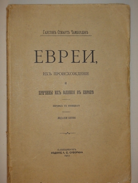 О книге англо-немецкого философа " Основы девятнадцатого века " высоко отзывался Л.Н.Толстой в одном из своих писем: "…книга Чемберлена очень хороша. Его утверждение о том, что Христос не был по расе евреем, совершенно справедливое и неопровержимо им доказанное, составляет только маленькую часть его превосходно задуманной книги. На вопрос ваш о том, как относиться к евреям, не могу вам иначе ответить, как так, как нас учит относиться к людям братьям учение Христа. Чем более они нам кажутся неприятны, тем большее усилие должны мы делать для того, чтобы не только победить это недоброжелательство, но и вызвать в душе своей любовь к ним. Такое отношение к ним, как и ко всем неприятным нам людям, одно может дать успокоение и нашим душам и вместе с тем самым действительным способом противодействовать их кажущемуся нам вредному влиянию ".