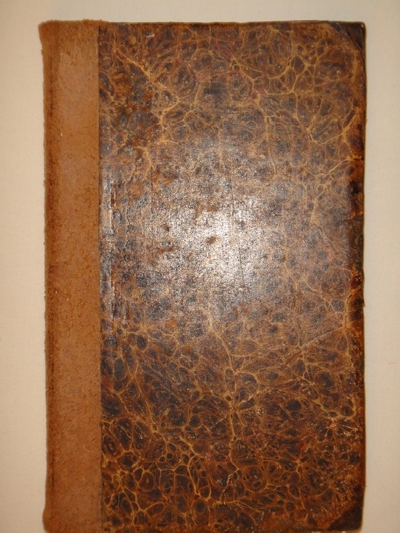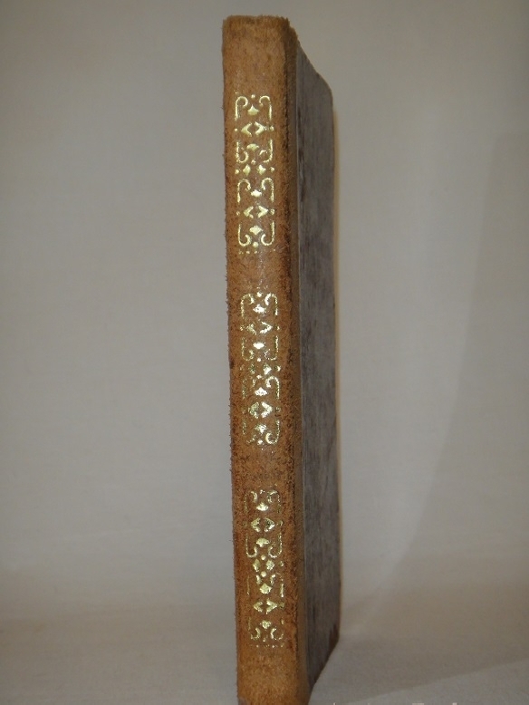 Экземпляр в твёрдом изящном полукожаном переплёте: современный замшевый корешок с золотым орнаментальным тиснением, родные издательские крышки с уголками оклеены мраморной бумагой.