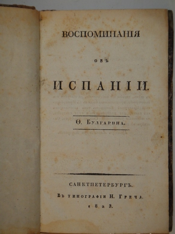 " Я намерен представить читателям разительные черты народной войны, прославившей Испанию и нанёсшей первый удар могуществу Наполеона " - так изложен авторский замысел в предисловии к " Воспоминаниям об Испании ". Народная война против французской экспансии, ставшая предметом внимания Ф.В.Булгарина, началась в 1808 году. Её спровоцировало введение в Мадрид и испанские провинции многочисленных французских войск под предлогом совместной войны с Португалией. Когда в июне 1808 года Наполеон подписал декрет о возведении на испанский престол своего брата Жозефа Бонапарта, вся Испания была уже охвачена восстанием. Для усмирения " бури " Наполеону приходилось посылать всё новые и новые отряды. В 1811 году в составе польского Надвислянского легиона в Испанию прибыл будущий автор " Воспоминаний " - Фаддей Венедиктович Булгарин. Ему уже приходилось участвовать в сражениях, причём под разными знамёнами. Воспитанник Сухопутного кадетского шляхетского корпуса в Петербурге, он в 1806 году был выпущен корнетом в Уланский Великого князя Константина Павловича полк и в 1807 году принял участие в битве под Фридландом. В 1809 году за какие-то провинности его перевели в Кронштадтский гарнизон, в 1810 - в Ямбургский драгунский полк, в 1811 году и вовсе отправили в отставку. Вернувшись на родину, в Польшу, он поступил на военную службу в герцогстве Варшавском, находившемся под протекторатом Наполеона, и тогда же был отправлен воевать в Испанию. В Отечественную войну 1812 года Булгарин сражался против русских в польском уланском полку 2-го пехотного корпуса маршала Удино. После окончания войны он снова вернулся в Варшаву, где началась его литературная деятельность. В 1819 году, имея в качестве защиты от возможного преследования властей указ Александра I о прощении поляков, воевавших в наполеоновских войсках, Булгарин перебрался в Петербург, где через некоторое время стал самым читаемым писателем-беллетристом и весьма удачливым журналистом.