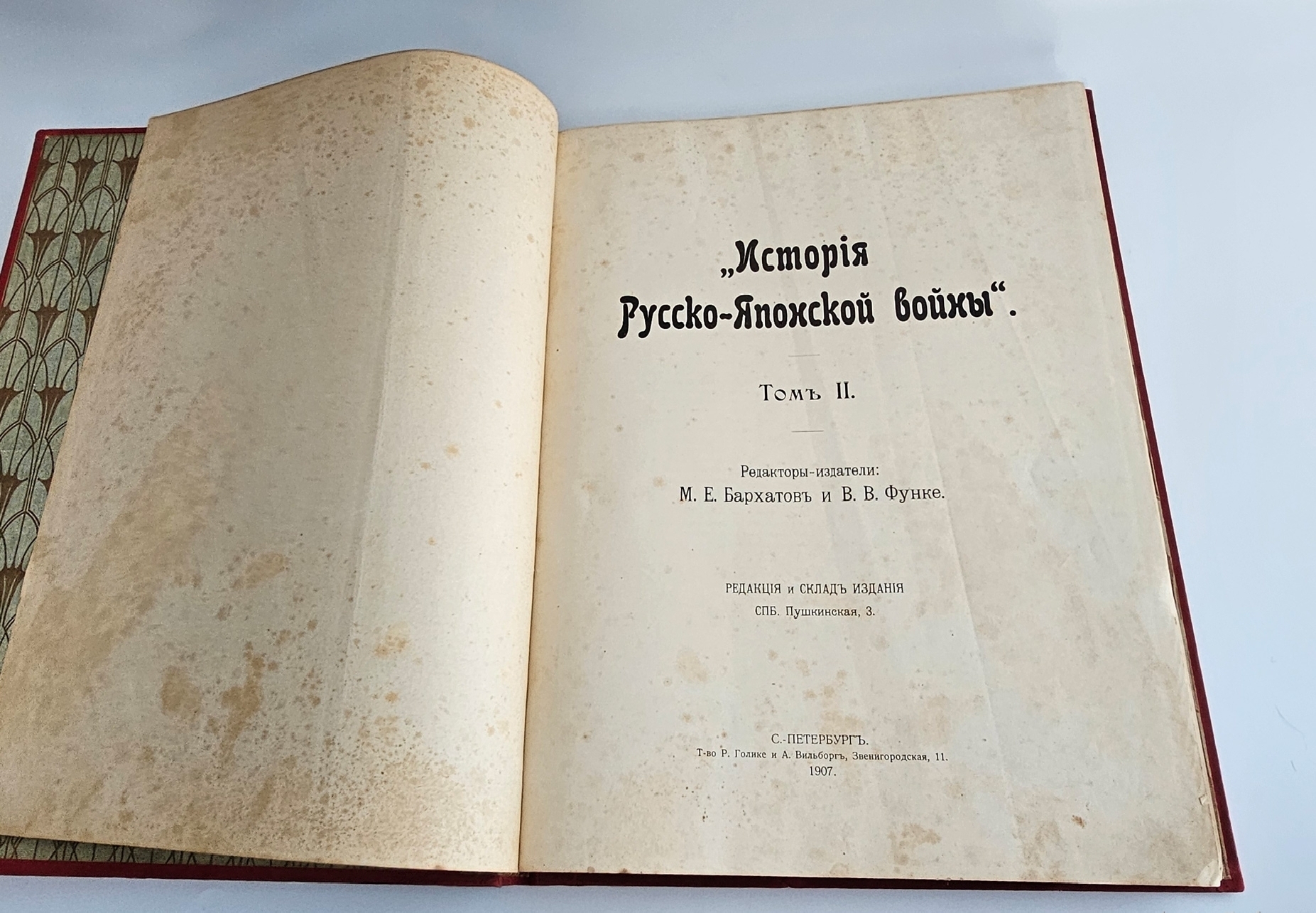 Полная художественно-иллюстрированная боевыми, бытовыми и разными военными снимками «История Русско-Японской войны» с изящно выполненными картами, планами в 5-ти томах и 6-й том – художественный альбом портретов участников войны (от генералов, командующих армией, до медсестер и полевых священников) с краткими биографическими сведениями.