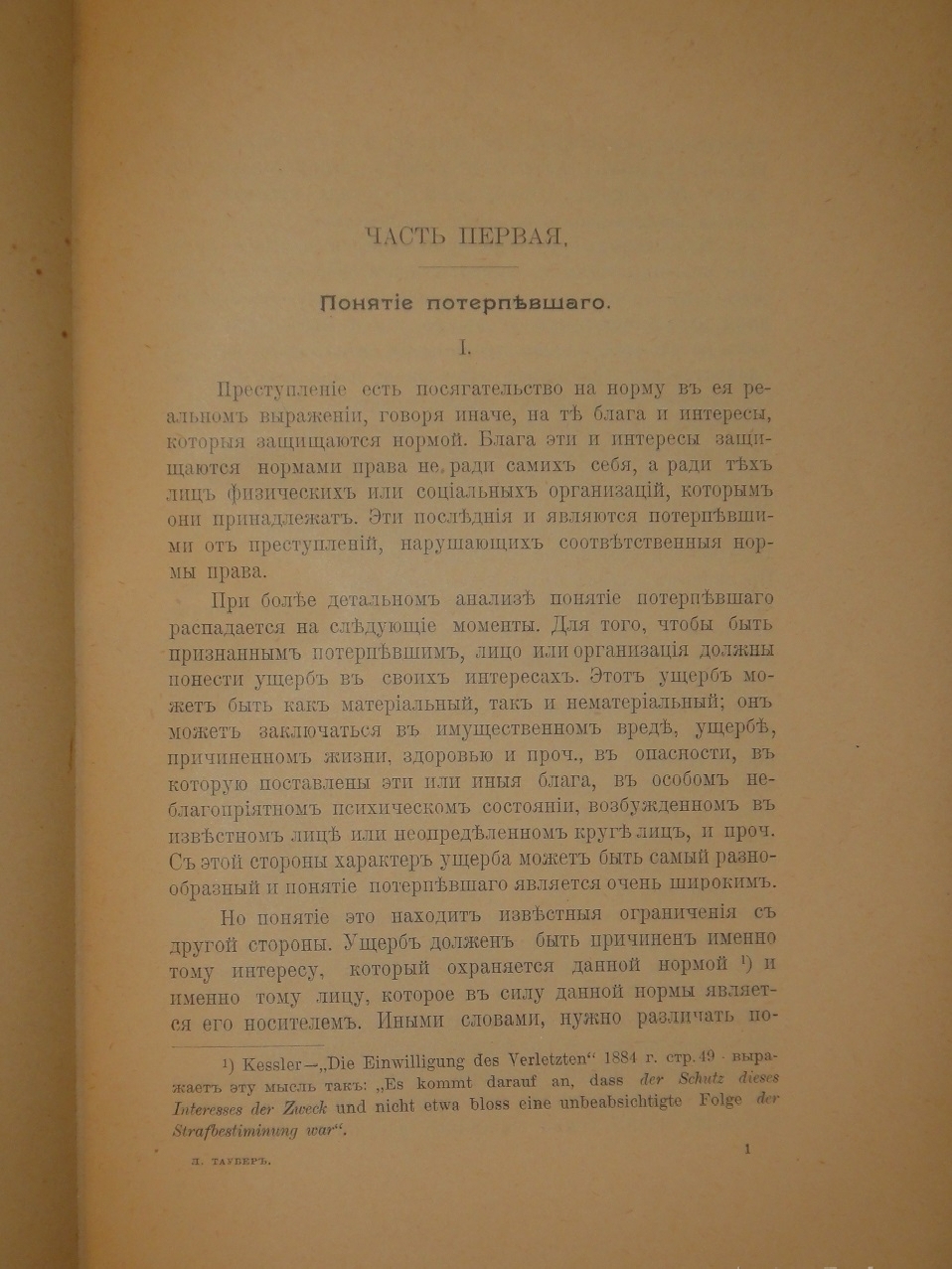 Самая авторитетная и цитируемая из них - " Жалоба потерпевшего при преступлениях неофициальных " - посвящена исследованию понятия потерпевшего в западно-европейском праве. " Работая над вопросом об участии потерпевшего в уголовном преследовании и о различных формах частного обвинения, мы натолкнулись на более или менее тесную связь, наблюдаемую в современных законодательствах между частным обвинением и так называемыми неофициальными преступлениями. Для выяснения характера этой связи пришлось заняться изучением юридической природы неофициальных преступлений ", - отмечает автор в предисловии.